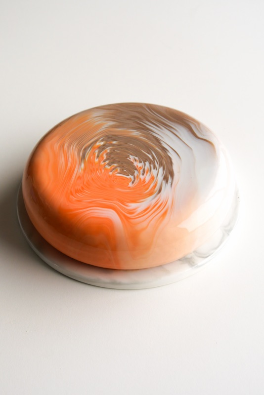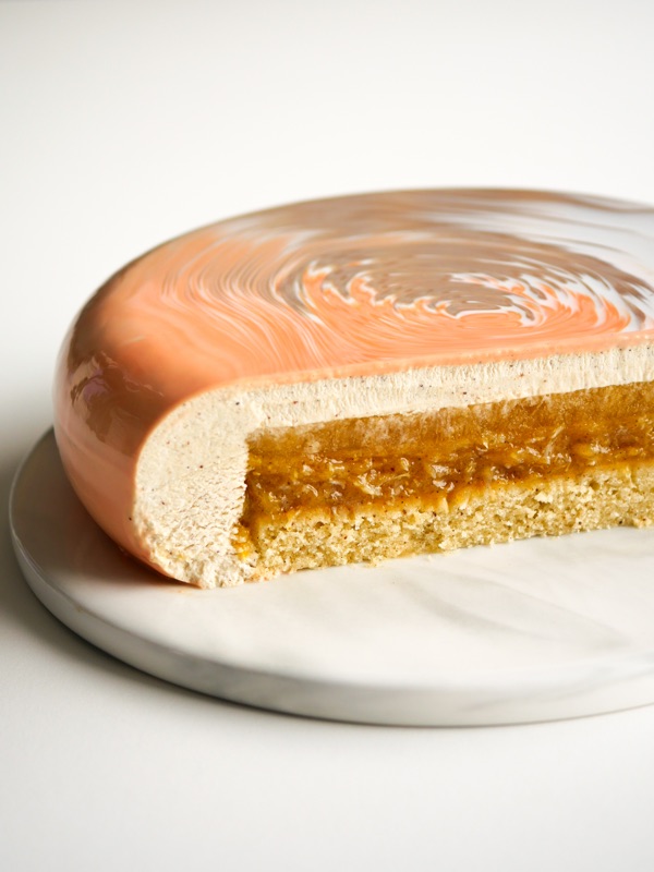 Il y a des entremets qui racontent une histoire dès le premier regard, comme une promesse de douceur et de caractère. Avec ses nuances d’orange lumineux, de blanc immaculé et de marron délicat, celui-ci évoque à la fois la chaleur réconfortante de l’hiver et l’éclat fruité des agrumes. Sous sa surface parfaitement lisse se cache une mousse vanille d’une tendresse absolue, contrastée par un insert vibrant de marmelade et de gel de clémentine, véritable explosion de fraîcheur. Le tout repose sur un biscuit madeleine, moelleux et légèrement beurré, qui apporte une touche familière et chaleureuse. Un dessert à la fois élégant, lumineux et profondément réconfortant, une invitation à savourer l’harmonie parfaite entre douceur et acidité.